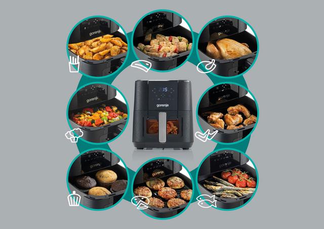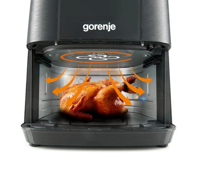Харчуйтесь із користю, навіть коли любите обсмажену картоплю, золотисті лукові кільця і крильця, з новою мультипіччю GORENJE. Задіявши потужну циркуляцію гарячого повітря всередині, вона забезпечить ту саме золотисту скоринку, як і після традиційного смаження, лише з мінімальним додаванням олії. А це дозволить зберегти більше натурального смаку, аромату і користі ваших продуктів, які б страви ви не готували для обіду з родиною.