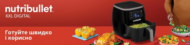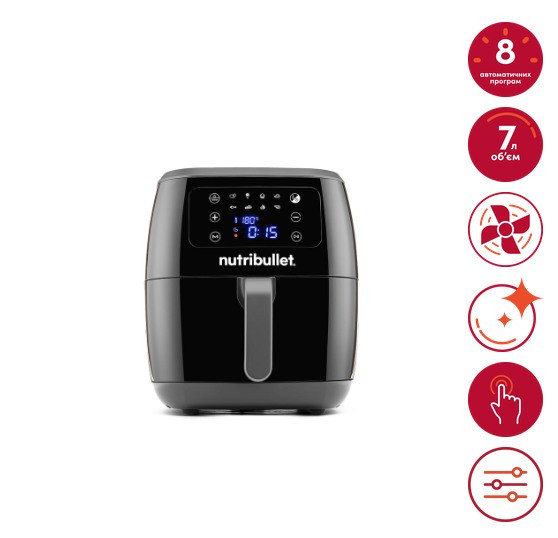 У NUTRIBULLET NBA071B використовується велика чаша – завдяки її збільшеному об'єму ви зможете за один раз запекти цілу курку, приготувати цвітну капусту або посмажити до 1 кг картоплі фрі.