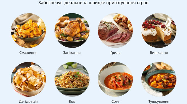 Технологія RapidAir з унікальним запатентованим дизайном «starfish» (морська зірка) забезпечує швидку циркуляцію гарячого повітря для приготування смачної їжі, хрусткої зверху та ніжної усередині, практично без олії.