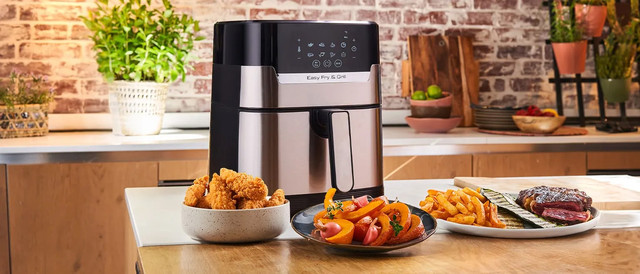 Технологія Extra Crisp забезпечує ідеальний баланс температури і потоку гарячого повітря для отримання хрусткої золотистої скоринки зовні та соковитої страви всередині з невеликим додаванням олії або взагалі без неї.