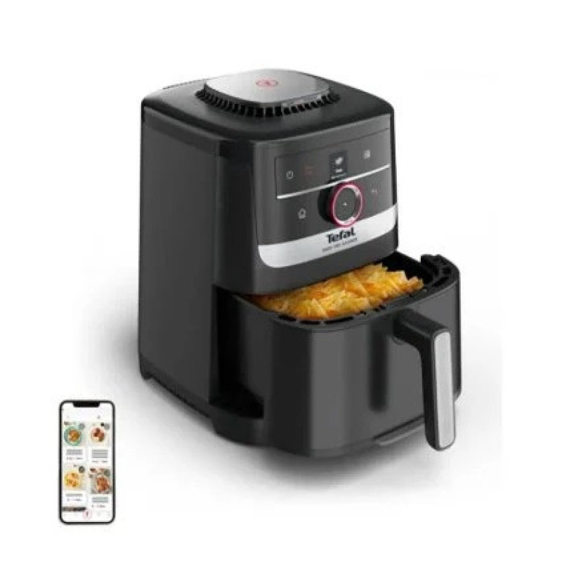 Аерофритюрниця Tefal EY55JDE0 – це сучасний прилад, який дозволяє готувати улюблені страви здоровішим способом – хрусткими зовні та соковитими всередині, з мінімальним вмістом жиру. Завдяки технології Extra Crisp їжа рівномірно підсмажується та зберігає свій повний смак. Містка чаша об'ємом 5,6 літра дозволяє готувати страви для всієї родини, а інтуїтивно зрозуміла сенсорна панель з 8 автоматичними програмами спрощує використання та вибір режиму для будь-якої страви – від картоплі фрі до м'яса, овочів та десертів. Функція гриля дозволяє досягти результату, подібного до приготування їжі на грилі, а таймер з автоматичним вимкненням забезпечує зручність та безпеку. Елегантний чорно-сріблястий дизайн робить прилад ідеальним для сучасної кухні.
