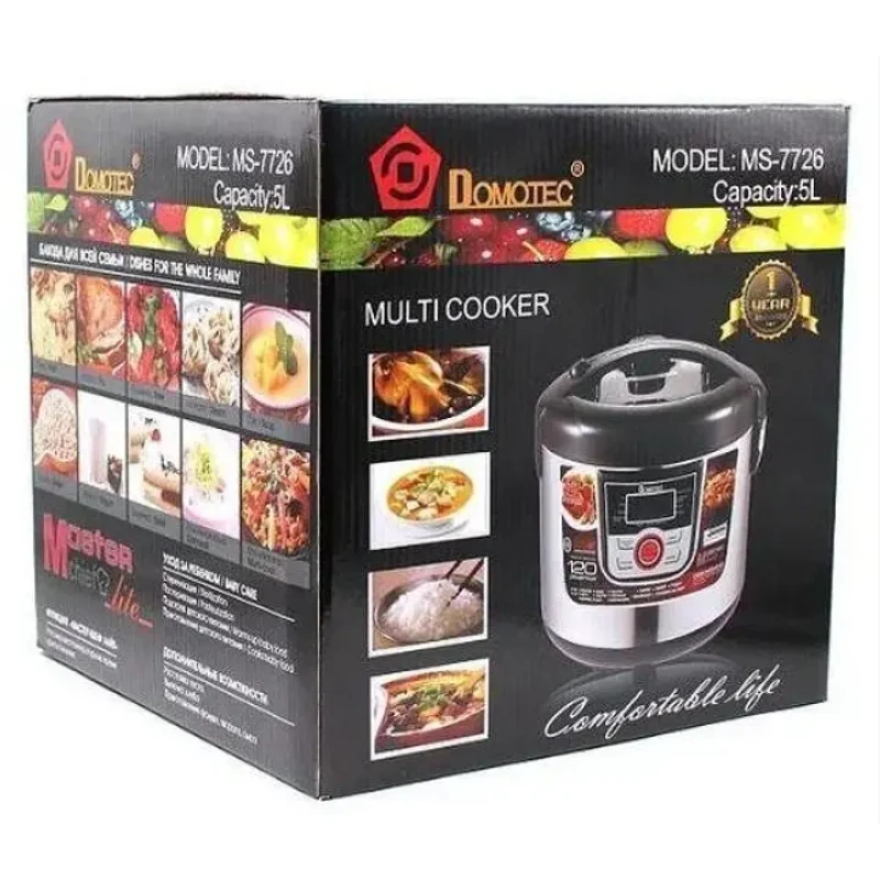 Мультиварка Domotec MS-7726 призначена для приготування страв в автоматичному або напівавтоматичному режимі. Дозволяє варити, смажити, пекти, тушкувати, готувати на пару і у фритюрі, підігрівати вже приготовлені страви, підтримувати гарячий тривалий час, при цьому не вимагаючи постійного контролю.