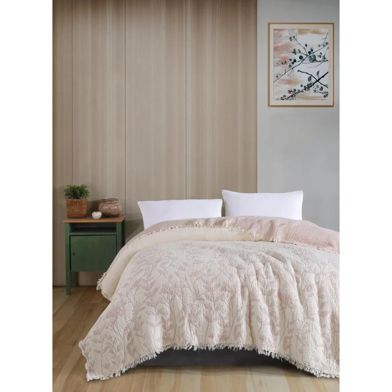 Додайте вашій спальні атмосфери легкості та еко-шику з мусліновим покривалом Moss Botanic. Це втілення сучасного тренду на натуральність та комфорт. Виготовлене з багатошарового мусліну (100% бавовна), покривало має унікальну "жату" фактуру, яка виглядає стильно і не вимагає прасування.