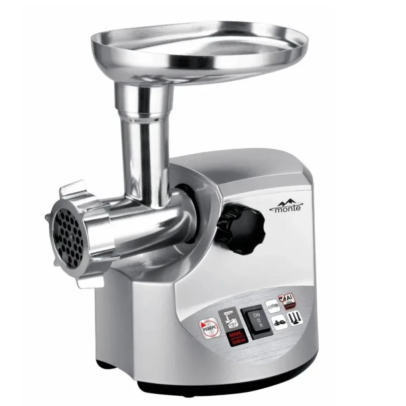 Monte MT-3160 — це потужна м'ясорубка з мотором 3100 Вт, яка дозволяє швидко та ефективно переробляти м'ясо, овочі та інші продукти. Завдяки металевим шестерням цей прилад забезпечує високу надійність та довговічність, що дозволяє використовувати його для регулярного приготування фаршу.М'ясорубка має пластмасовий корпус, що робить її легким у використанні і зберіганні, але зберігає міцність для тривалої експлуатації. Завдяки функції реверсу ви зможете усувати забивання при приготуванні фаршу, що забезпечує безперебійну роботу пристрою.Monte MT-3160 комплектується трьома перфорованими дисками, що дозволяють вибирати ступінь подрібнення фаршу, а також насадками для кеббе та ковбас, що дозволяє готувати різноманітні страви. Ця м'ясорубка стане незамінним помічником на кухні для приготування фаршу, домашніх ковбас або страв з фаршу. Основні характеристики:Потужність: 3100 ВтШестерні: Металеві для підвищеної надійностіКорпус: ПластмасовийФункція реверсу: Так (для усунення забивання)Насадки в комплекті: Для кеббе, для ковбасДиски: 3 перфорованих диска для фаршу з різною крупністюМісткість: Висока продуктивність, зручний великий завантажувальний отвірГабарити: Прибл. 28 x 17 x 27 смВага: ~3.5 кгКолір: Білий/сірийКраїна бренду: КитайMonte MT-3160 — це потужна та надійна м'ясорубка, яка стане відмінним помічником на кухні для приготування фаршу, ковбас та інших страв з м'яса завдяки своїй потужності, металевим шестерням та універсальним насадкам.