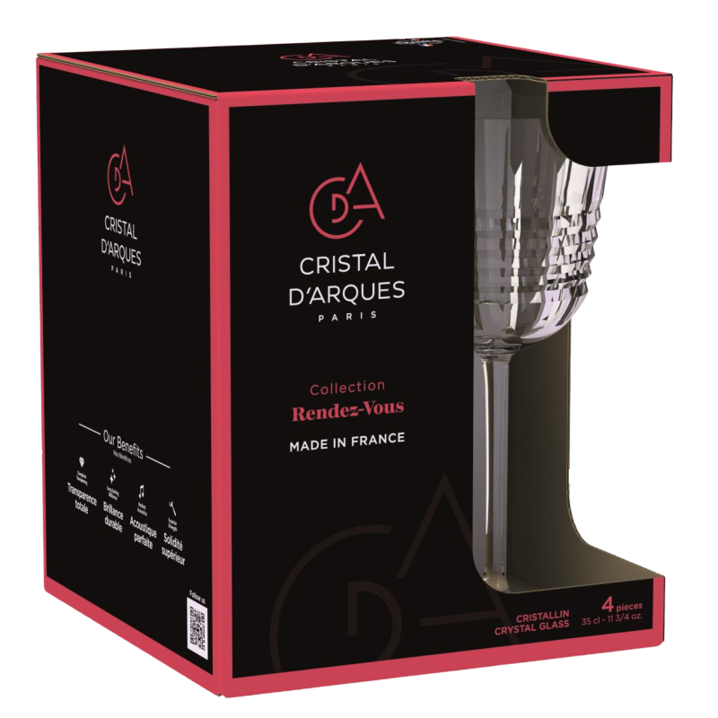 Бокал вирізняються своєю неперевершеною формою, заворожуючими гранями та різьбленою структурою. Ця колекція зроблена з благородного матеріалу, хрустального скла Krysta, і включає моделі, що поєднують сміливість з сучасністю. Rendez-Vous – повноцінна лінійка: до колекції входять бокали для сервірування білого та червоного вина, бокал флюте для ігристих вин, високі та низькі склянки для коктейлів, віскі чи води.