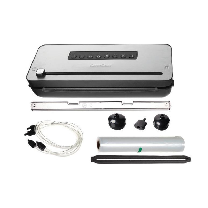 Включно з запасною прокладкою, рулоном фольги 3 м і 3 перехідниками з вакуумним клапаном