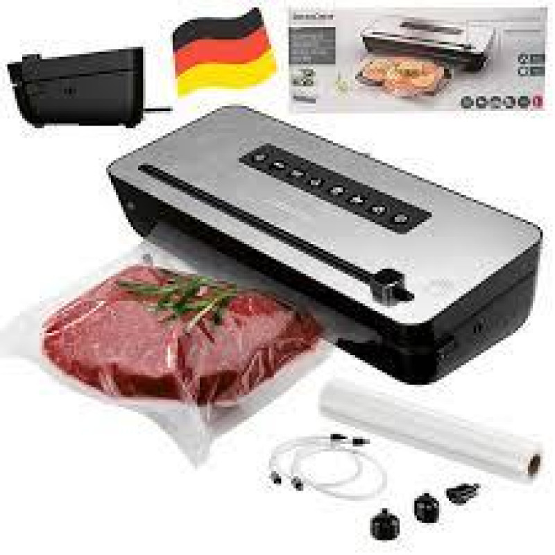 Функції:Маринація: Зберігайте смак і аромат продуктів, маринуючи їх у вакуумі.Вологий і сухий режими: Для різних типів продуктів.Делікатний режим: Для ніжних і чутливих продуктів.Обладнання:Вбудований ніж для легкого різання плівки.Особливий відсік для зберігання плівки та аксесуарів.Сигнальні лампи для контролю процесу вакуумування.Вжиті ручки для зберігання кабелю та ніжки для стійкого стану.Триметровий рулон плівки, який не містить бісфенол-А, також придатний для використання в мікрохвильовій печі (макс. до 70 °C).3 слабкості у вакуумних клапанах - дозволяє вакуумувати контейнери з клапаном і мішками, доступними на ринку.Запасна прокладка.Інші особливості:Містить аксесуари, такі як Caso і Foodsave.Знімальний піддон для крапель, можна мити в посудомийній машині.Підходить для стандартних рулонів плівки завширшки до 30 см.Комплектація:Вакууматор.Запасна прокладка.Рулон плівки (3 м).3 адаптери вакуумного клапана.Цей вакуумний пакувальник стане незамінним помічником для зберігання продуктів харчування та приготування їжі. Його стильний дизайн з нержавіючої сталі додасть елегантності вашій кухні.