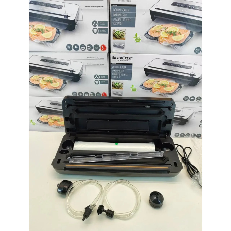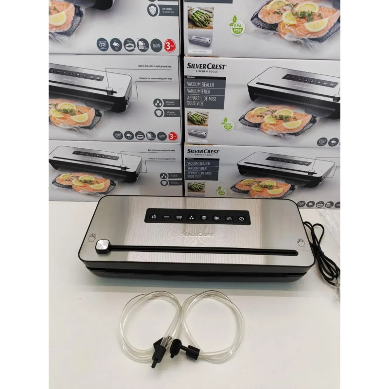 Бренд є частиною німецького холдингу Schwarz Group, п'ятого за величиною роздрібного торговця у світі.Silvercrest надалі розвиває амбітні плани та інвестувати в технології та виробництво своєї продукції.Silvercrest — це доступна техніка та високі технології для будь-якого покупця. Надійна, міцна, практична й елегантна.Вся продукція марки Silvercrest® проходить тестування відповідно до суворих критерій безпеки в відомих інститутах Німеччини. Технічні характеристики: Споживана потужність: 160 Втрозміри пристрою: приблизно 395 х 256 х 108 мм: приблизно 2145 гупаковна машина та вакуумний пакувальник для збереження харчових продуктів способом, що захищає від доступу ароматизаторів, повітря і води продукт ідеально підходить для приготування їжі су-від, що є останнім трендом у гастрономії для гурманов із благородним зовнішнім виглядом неіржавкої сталі ФУНКЦІЇ: з функцією маринуванняФункція «Вологий і сухий» для дуже вологих продуктів.М'яка функція для делікатних продуктівОБОРУДАННЯ: вбудований ніж для легкого різання плівки спеціальний відсік для зберігання плівки й аксесуарівсигальні лампи для контролю процесу вакуумуванняпрактичні ручки для зберігання кабелю та нековзні ніжки для стійкого положення 3-метровий рулон плівки, що не містить бісфенолу-А, також придатний для використання в мікрохвильовій печі (макс. до 70 °C)3 адаптера для вакуумних клапанів — дає змогу вакуумувати контейнери з клапаном і мішками, доступними на ринку.запасна прокладка ДРУГІЄ ВАЖНІ ОСОБЛИВОСТІ: сумісний із наявними в продажу аксесуарами, як-от Caso і Foodsaveзнімний піддон для крапель, можна мити в посудомийній машині для стандартних рулонів плівки завширшки до 30 смКомплектація бакууматорзапасна прокладкарулон плівки 3 м3x адаптер вакуумного клапана