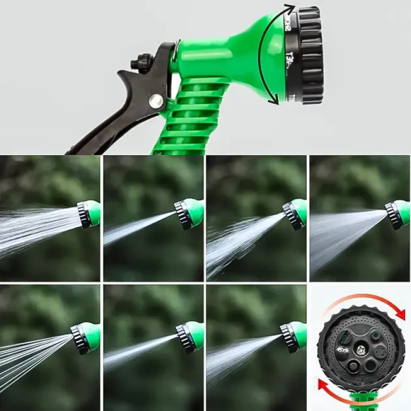 7 режимів розпилення: Завдяки пістолету з розпилювачем цей набір пропонує сім різних режимів поливу. Від легкого обприскування до потужного натиску – завжди буде вибір, який підійде для вашого саду.