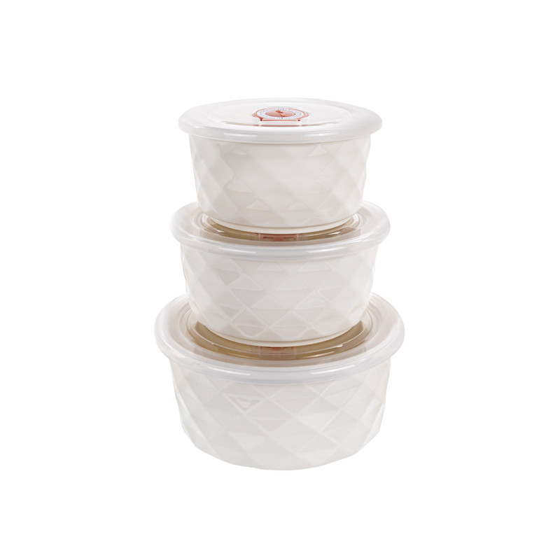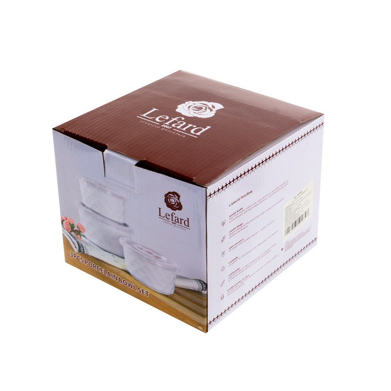 Салатники виготовлені з міцної порцеляни, що не вбирає запахи та не змінює колір продуктів. Завдяки кришкам можна зручно зберігати залишки страв у холодильнику або брати їх із собою. Такий набір стане не лише функціональним, але й естетичним доповненням вашого кухонного посуду.