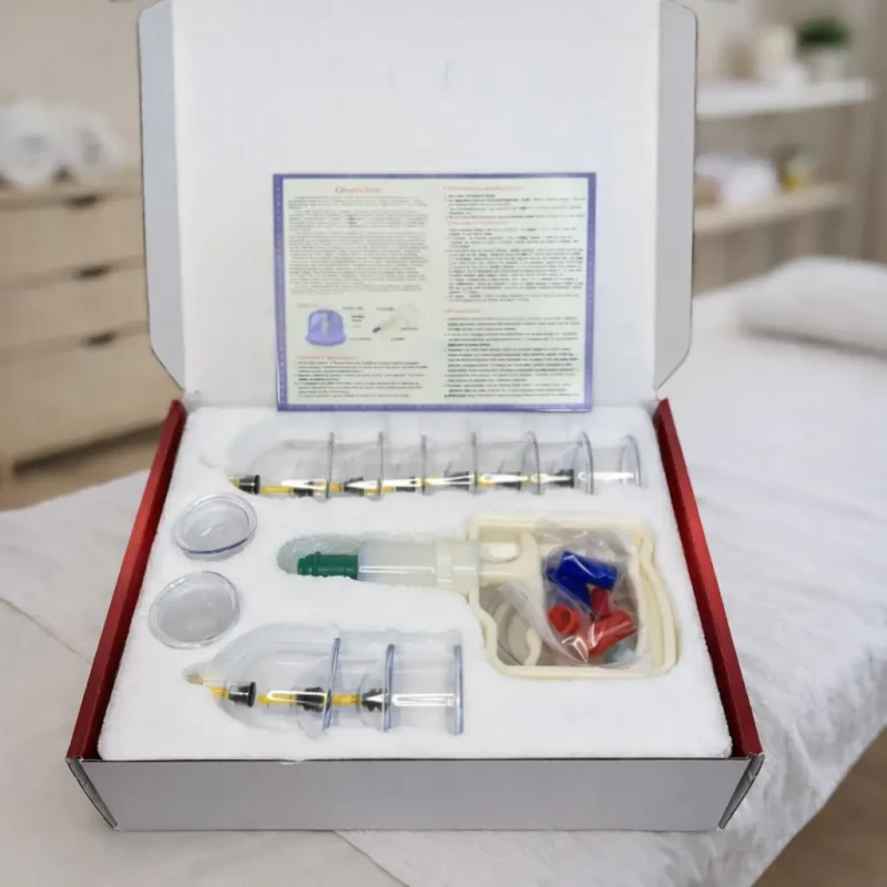 Набор из 12 вакуумных банок для массажа разных зон тела.