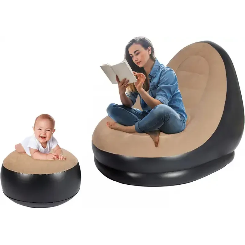 Надувний диван з пуфом Air Sofa Надувне велюрове крісло з пуфом | Надувне садове крісло