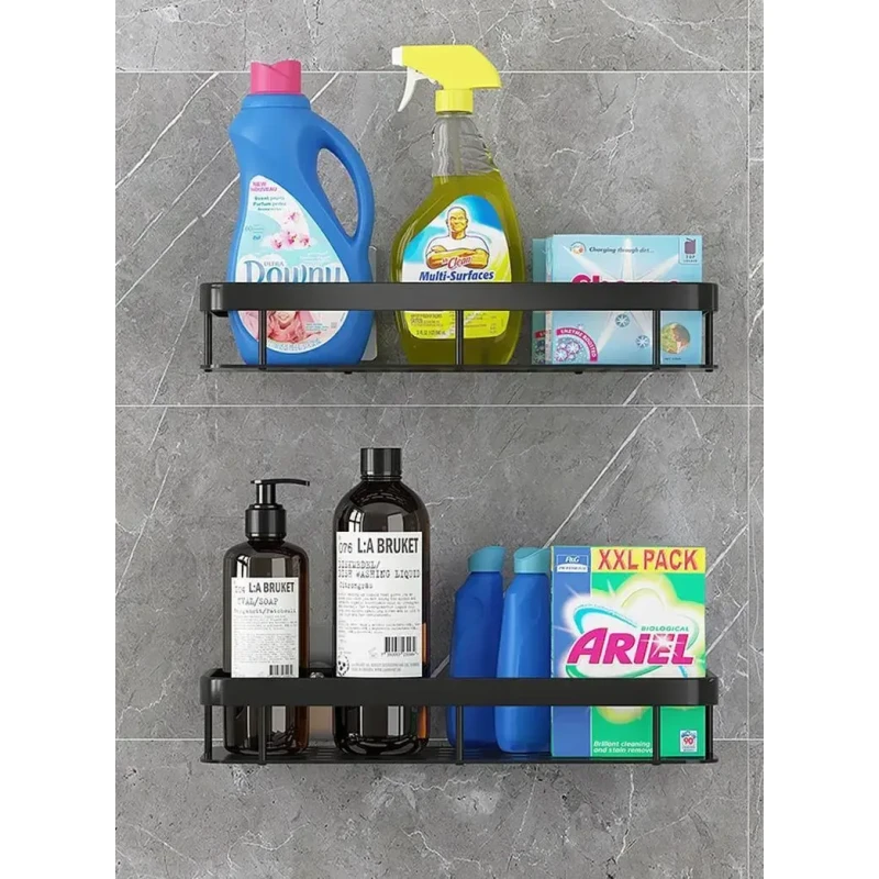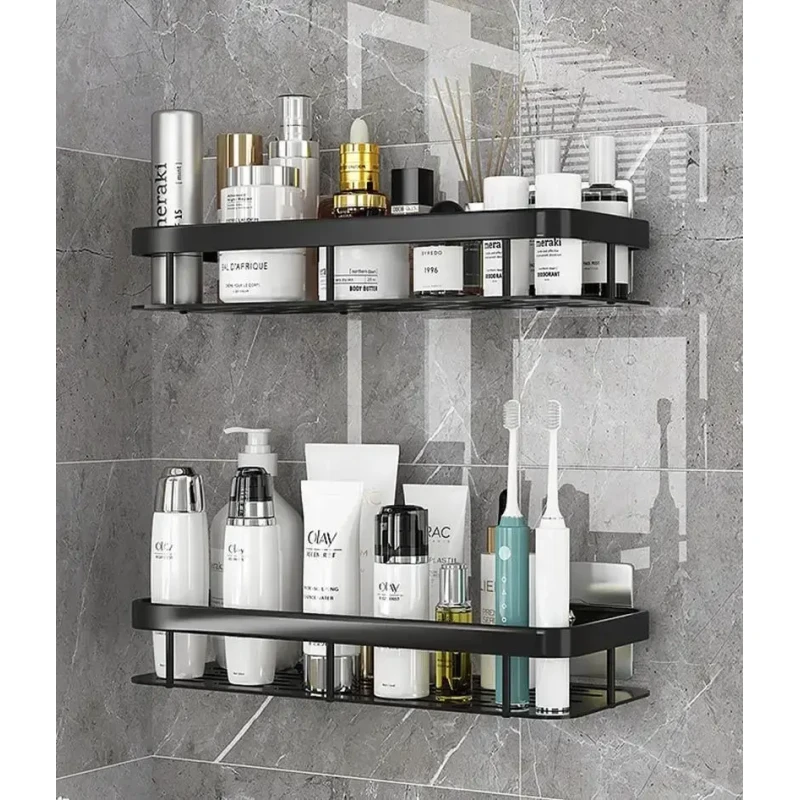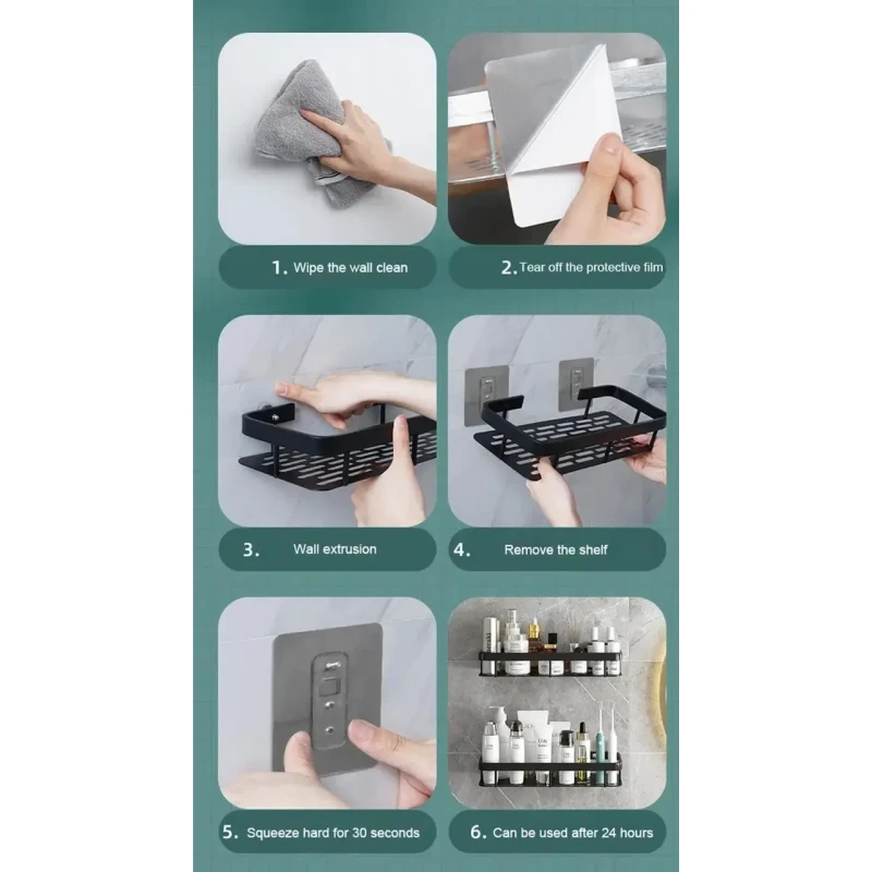 Полиця стильного чорного кольору гармонійно впишеться в інтер'єр, а монтаж порушить його, не потрібно застосування будівельного інструменту. Жодних дірок, сміття та шуму від дрилю! Заокруглений дизайн знижує травмонебезпечність, а перфороване дно не дозволяє застоюватися воді, ефективно видаляючи вологу і просушуючи предмети гігієни.