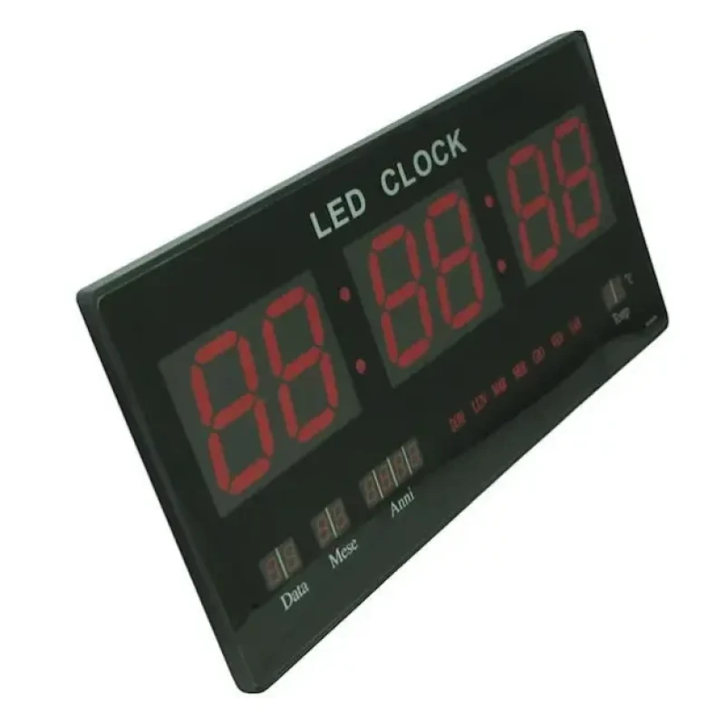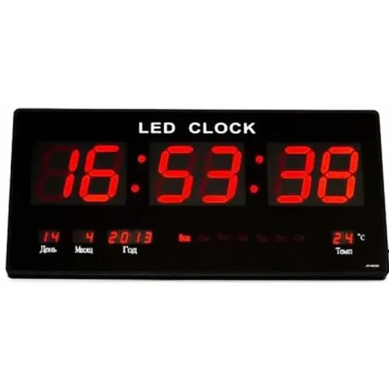 Сучасні великі настінні електронні LED годинники з календарем і термометром, прості у використанні. Дисплей електронного годинника виконаний зі скла. Кнопки керування розташовані на тильній стороні пристрою.