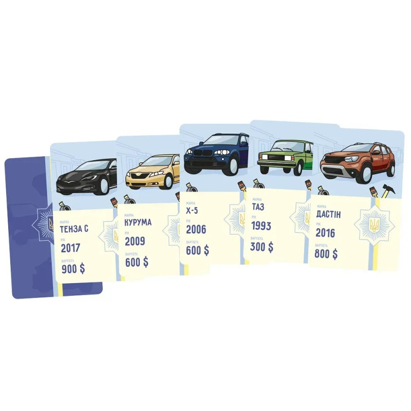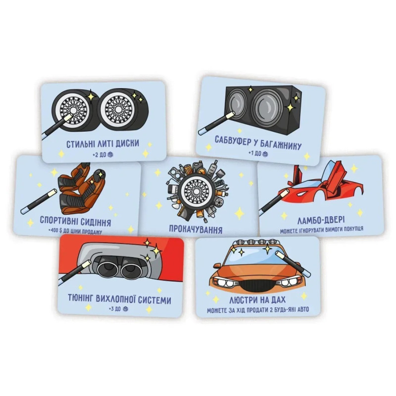 Усередині коробки ви знайдете багато візуально знайомих компонентів: карти, кубик, жетони грошей та шпаргалки для початківців, які допоможуть швидко зрозуміти і поринути в ігровий процес.