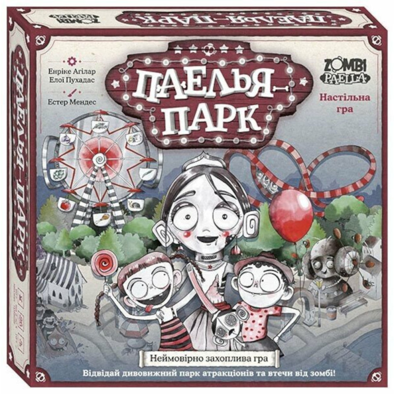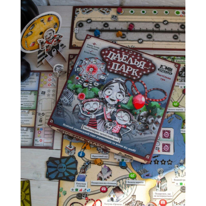Ласкаво просимо до Паелья-парку, де адреналін тече річками, зомбі тиснуть у чергах, а від сміху та крутого екшену закладає вуха! Це справжня зомбі-епопея, що кидає виклик усім настільним іграм світу.
