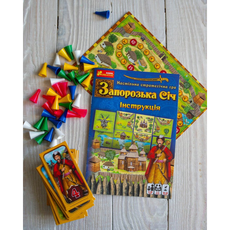 «Запорозька Січ» — стратегічна настільна гра, що переносить тебе у серце героїчного козацького світу. Тут ти не просто гравець — ти справжній воїн, який будує, завойовує й управляє! Прагнеш стати гетьманом? Тоді час скласти власну стратегію і довести свою майстерність!