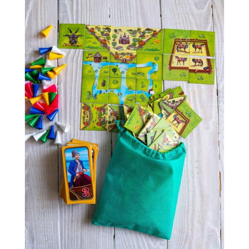 Поступово формується карта з річками, полями, млинами та поселеннями. Уміле розміщення фішок визначає контроль над територіями, розвиток стратегій і загальний хід гри. Тактичне мислення, логіка та раціональне управління ресурсами стають ключем до лідерства.