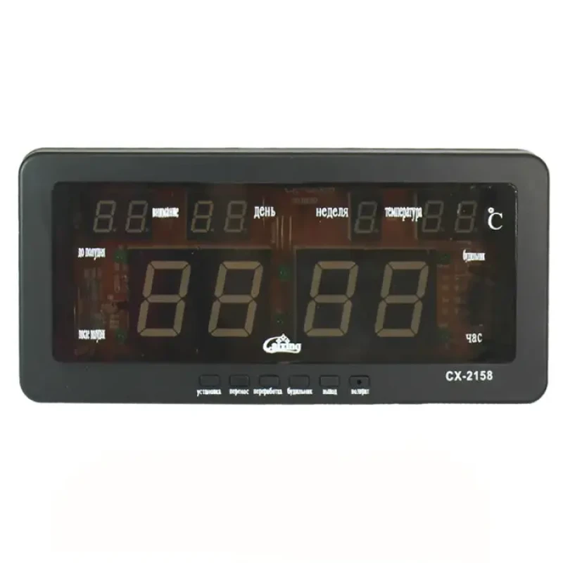 Має ідеальну читаність цифр та підсвічування зеленого кольору. Кнопки керування розташовані під екраном. Можна виставити 24- та 12-ти годинний режим часу. Існує функція будильника.
