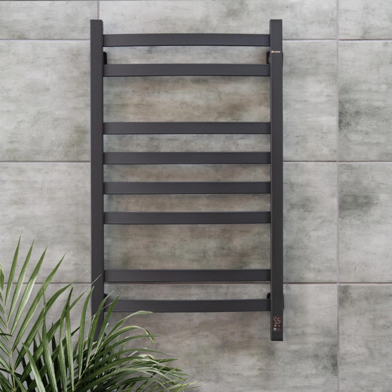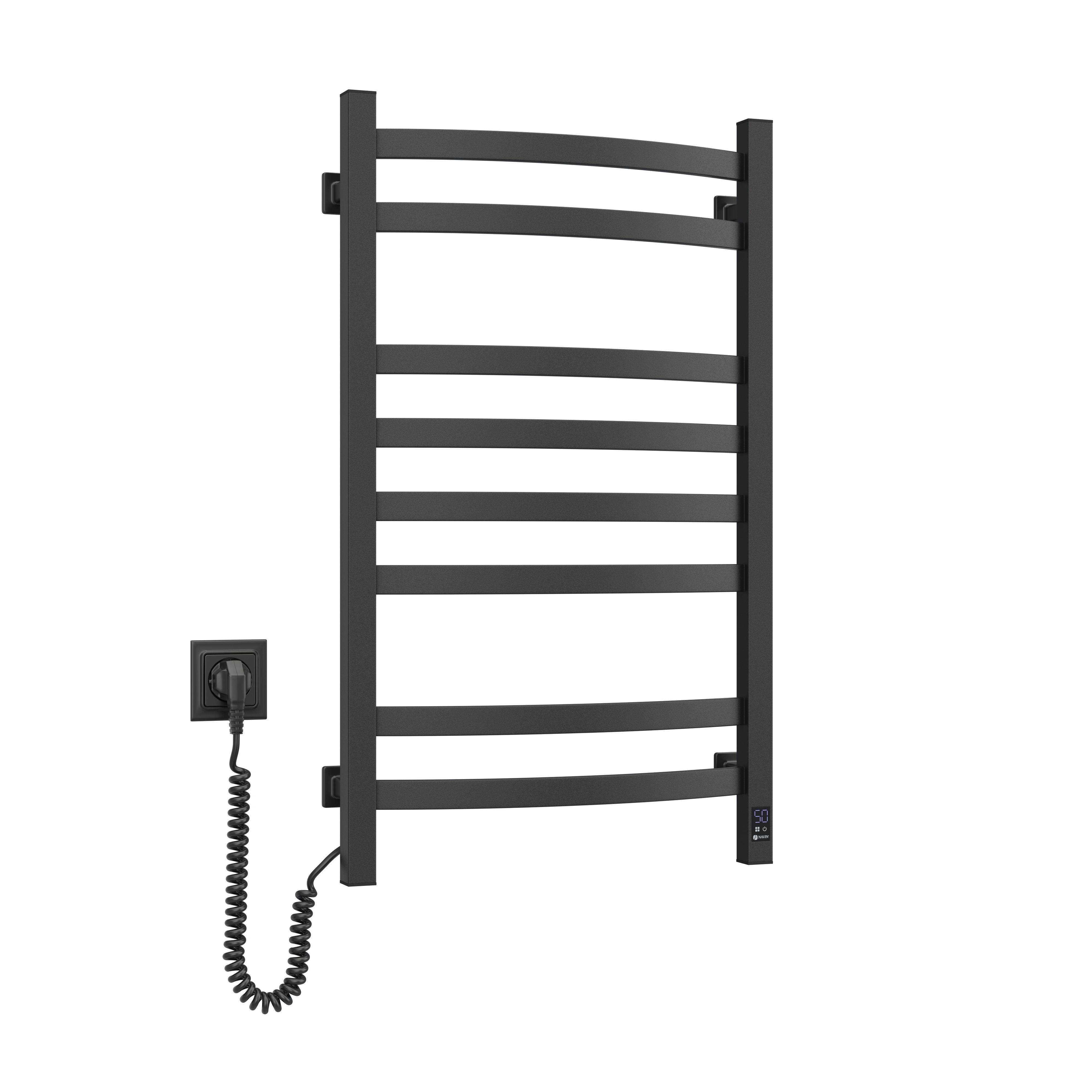 Електрична рушникосушарка Navin Avalon 12-203153-4880 у кольорі чорний муар поєднує міцність сталевої конструкції та сучасне сенсорне керування з таймером. Вісім секцій у формі драбинки забезпечують рівномірний нагрів і зручне сушіння рушників. Потужність 145 Вт забезпечує стабільну роботу з контролем температури до 55°C. Порошкове покриття підвищує стійкість до корозії та механічних впливів. Ліве розташування шнура робить монтаж зручним у різних типах інтер'єрів.