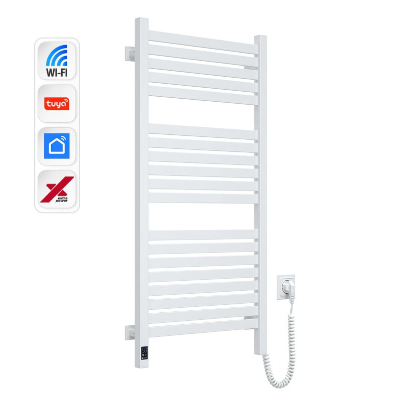 Електричне рушникосушка Navin Авангард X із правим підключенням забезпечує стабільне та рівномірне сушіння завдяки нагрівальному кабелю. Модель оснащена Wi-Fi та сенсорним керуванням, що дозволяє встановлювати температуру та розклад роботи дистанційно. Виготовлена з міцної фарбованої сталі, вона поєднує надійність і сучасний зовнішній вигляд.