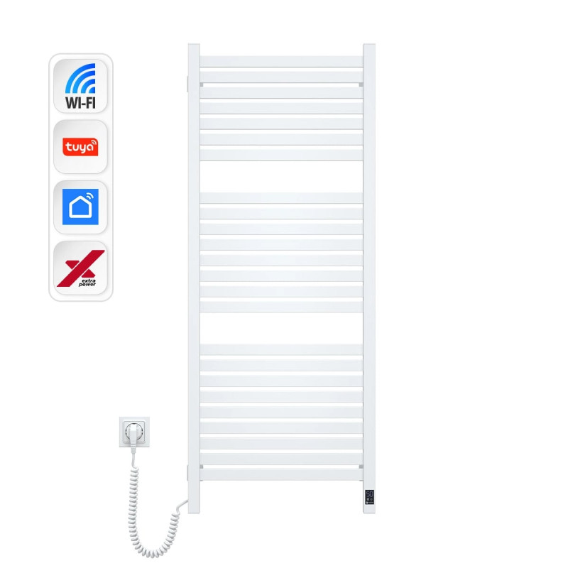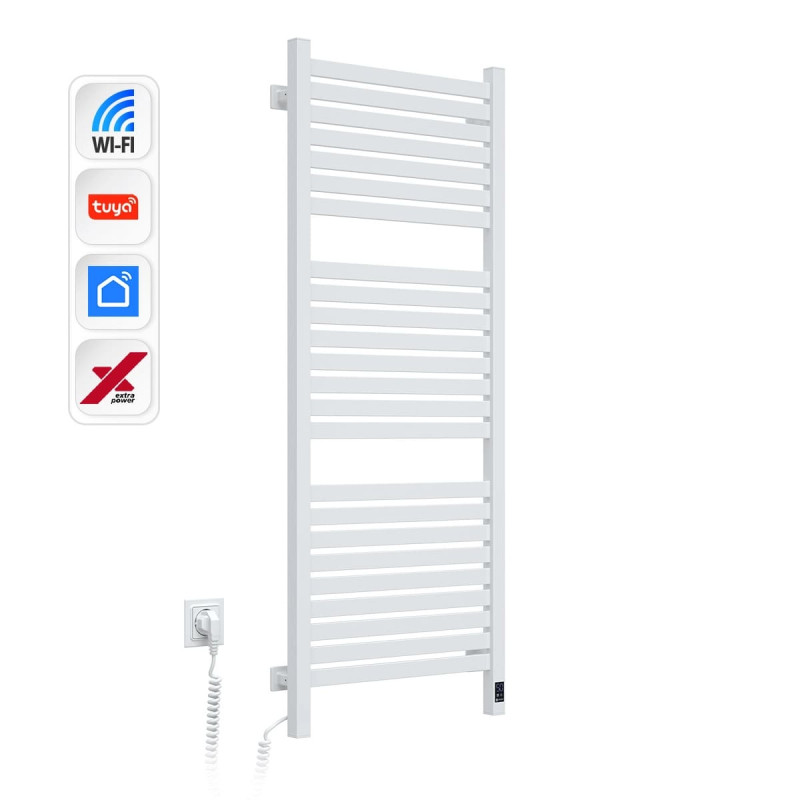 Електрична рушникосушка Navin Авангард X висотою 1200 мм забезпечує ефективне сушіння та рівномірне тепло завдяки 24 секціям та нагрівальному кабелю. Сенсорне Wi-Fi керування дає змогу дистанційно встановлювати температуру та створювати розклади. Пофарбована сталь та білий колір роблять модель універсальною для сучасних ванних кімнат. Ступінь захисту IP44 дозволяє безпечно використовувати її у влажних приміщеннях.