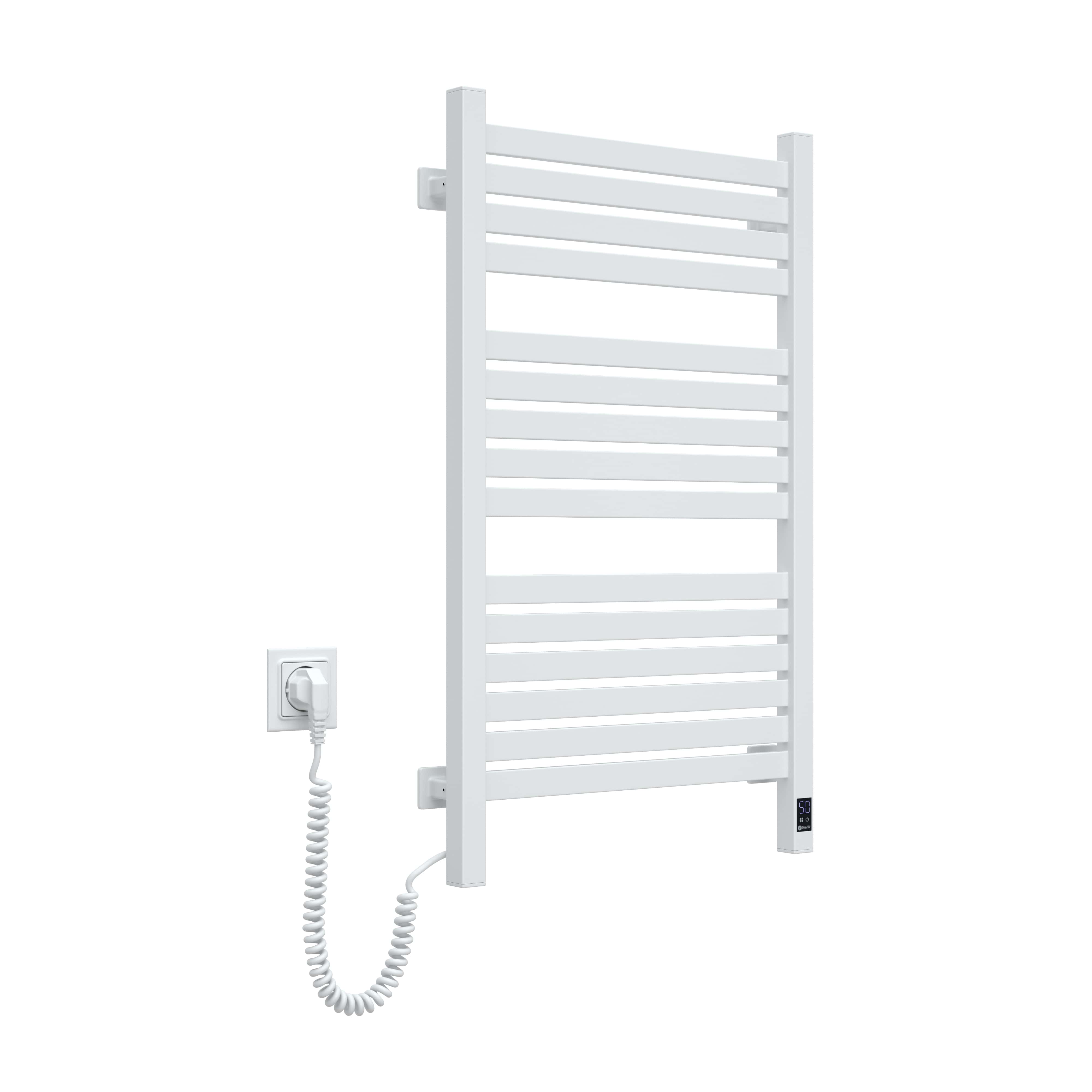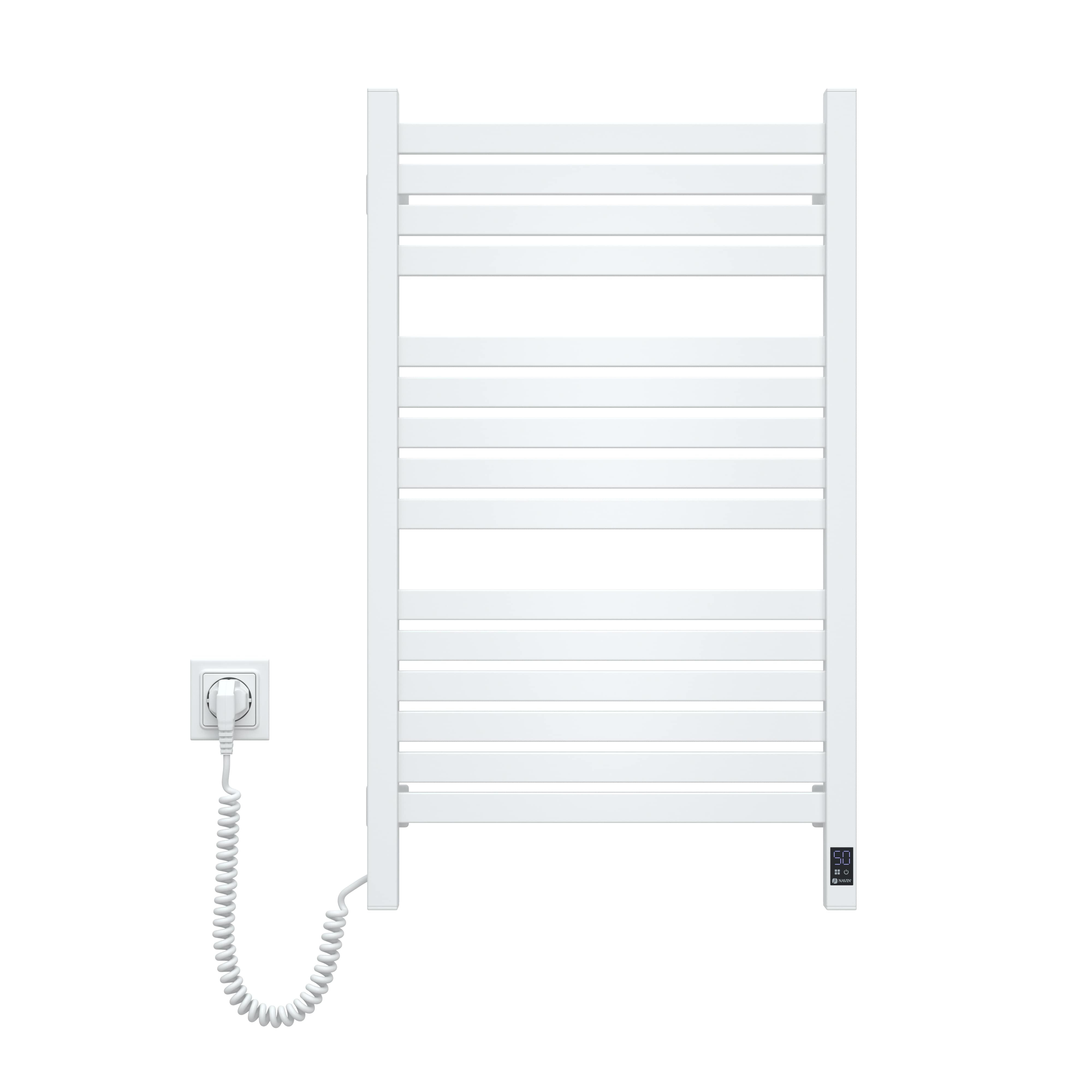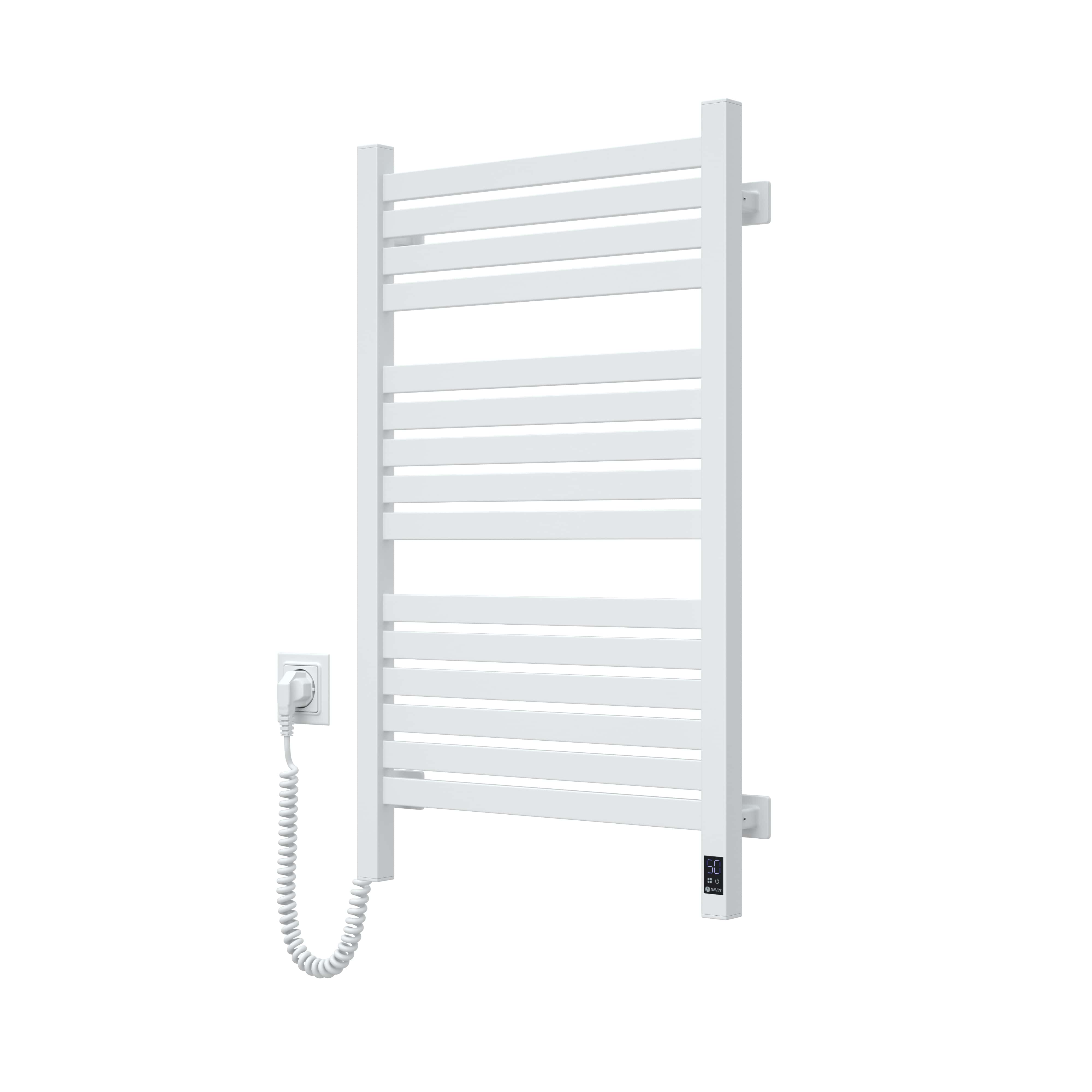 Електрична рушникосушка Navin Авангард X висотою 800 мм забезпечує комфортний обігрів і швидке висихання завдяки 15 секціям та нагрівальному кабелю. Модель оснащена сенсорним керуванням з підтримкою Wi-Fi, що дозволяє дистанційно змінювати налаштування. Сталева конструкція з білим покриттям надає виробу сучасного вигляду та стійкості до вологості. Клас захисту IP44 робить її безпечною для встановлення у ванній кімнаті.