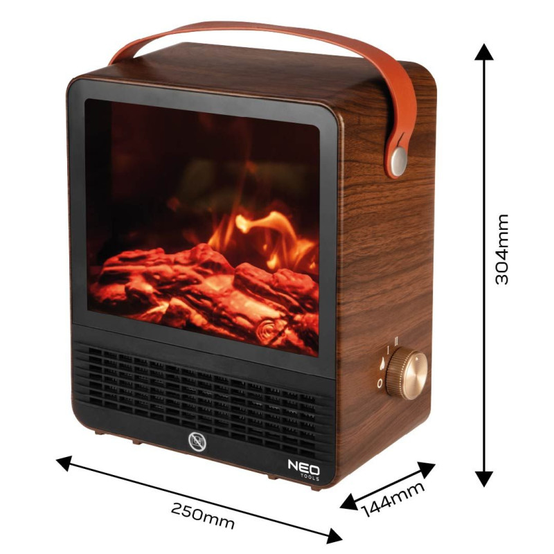 Декоративний електричний камін Neo Tools 90-156 поєднує затишок живого вогню та зручність сучасних технологій. Компактний прилад створює ефект реалістичного полум'я, додаючи інтер'єру тепла та комфорту, а також може використовуватись як додатковий джерело обігріву. Завдяки двом режимам потужності (850 Вт і 1500 Вт) користувач може обирати інтенсивність нагріву залежно від потреби.