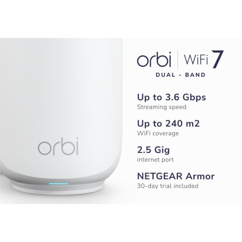 Система Wi-Fi Mesh NETGEAR Orbi RBE372 BE5000 забезпечує стабільне бездротове покриття у всьому будинку зі швидкістю до 3,6 Гбіт/с. Два модулі формують єдину мережу з плавним роумінгом між зонами покриття. Підтримка Wi-Fi 7, Multi-Link Operation та покращеного backhaul підвищує швидкість і надійність з'єднання. Порт 2,5 GbE дозволяє використовувати сучасні швидкісні тарифи інтернету. Система легко налаштовується та керується через мобільний приклад Orbi.
