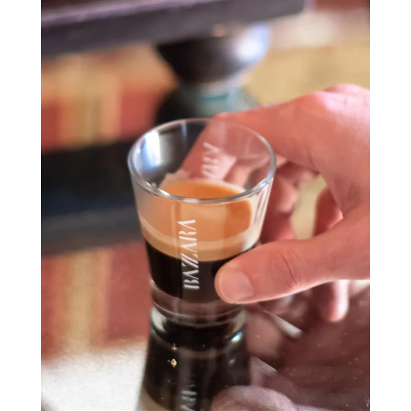 Стильні преміальні чашки об'ємом 70 мл для еспресо, ристрету або води. Елегантний дизайн із логотипом Bazzara поєднує італійську витонченість та практичність. Виготовлені зі скла, стійкого до царапин, вони зручні у використанні та придатні для миття в посудомийній машині. У наборі – 6 штук.