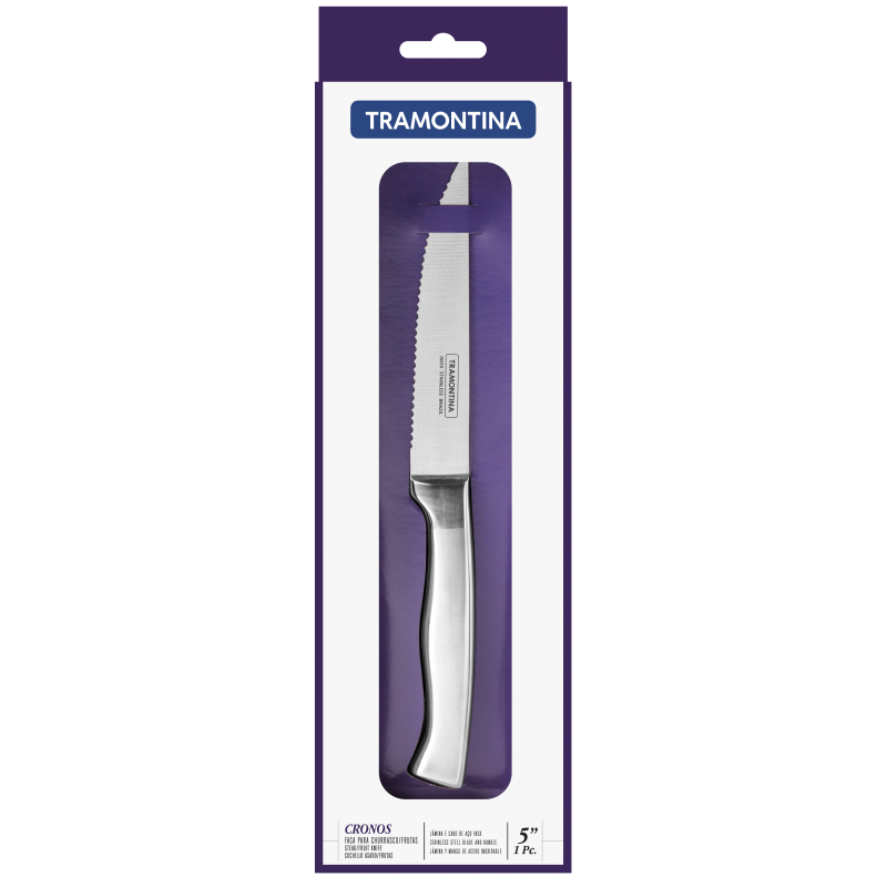Ніж Cronos Матеріал леза: нержавіюча сталь Матеріал рукоятки: нержавіюча сталь Ріжуча крайка ножа: зубчаста Колір: стальний Призначення ножа: для стейка