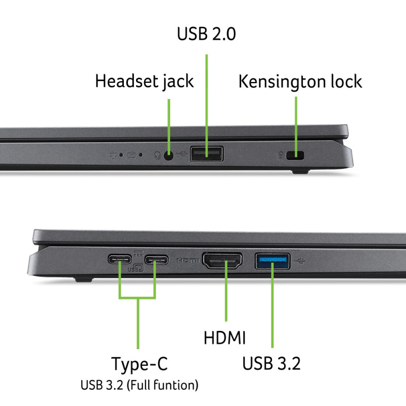 Швидке та легке підключення до периферійних пристроїв завдяки максимальній кількості опцій. Ноутбук оснащений різними портами, включаючи 1 порт USB 2.0, 2 порти USB 3.2 Gen1, HDMI та багато інших.