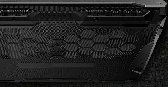 Ноутбук доступний у двох колірних варіантах: стильному сірому Eclipse Gray та агресивному чорному Graphite Black. Завдяки структурі на нижній панелі, що нагадує бджолині стільники, пристрій зручніше тримати при перенесенні. Вона візуально поєднується з ребрами жорсткості, виконаними у вигляді шестикутників по всьому корпусу. Текстурована обробка області під зап’ястями не тільки привабливо виглядає, але й стійка до забруднення.