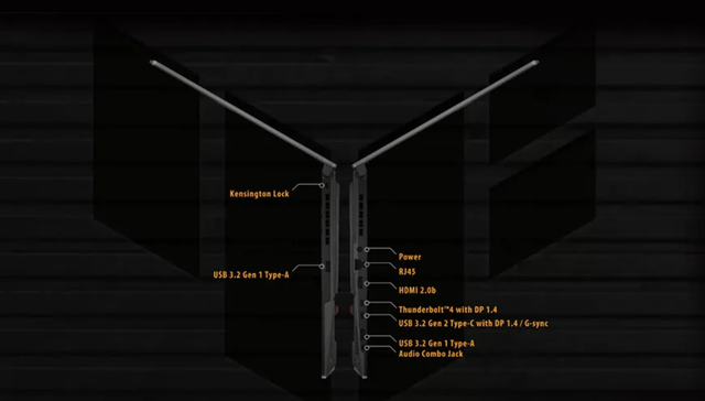 Ноутбук TUF Gaming F17 пропонує велику кількість портів для підключення периферії, серед яких є HDMI 2.0b, USB-C та Thunderbolt 4. Бездротовий модуль Wi-Fi 6 (802.11ax) забезпечує стабільний рівень сигналу та найвищу швидкість з'єднання в мережах сумісного стандарту. Для дротового підключення є порт Ethernet.