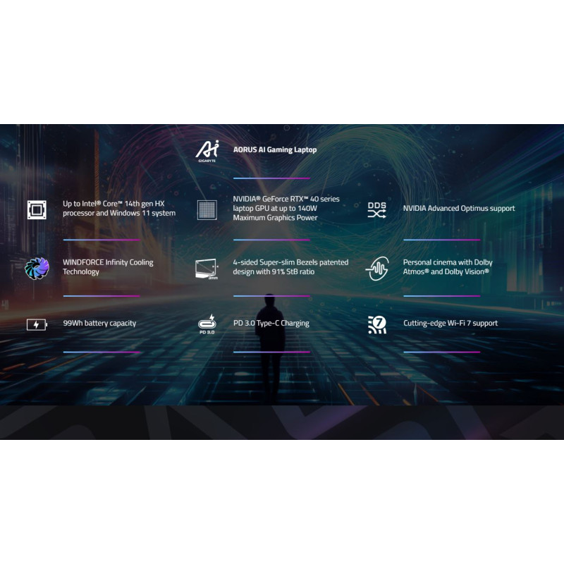 Представляємо нову лінійку ігрових ноутбуків зі штучним інтелектом від AORUS. Абсолютно новий AORUS 16X створений для використання найновішого процесора Intel Core HX і графічного процесора NVIDIA GeForce RTX серії 40 для ноутбуків для потужного генеративного ШІ.