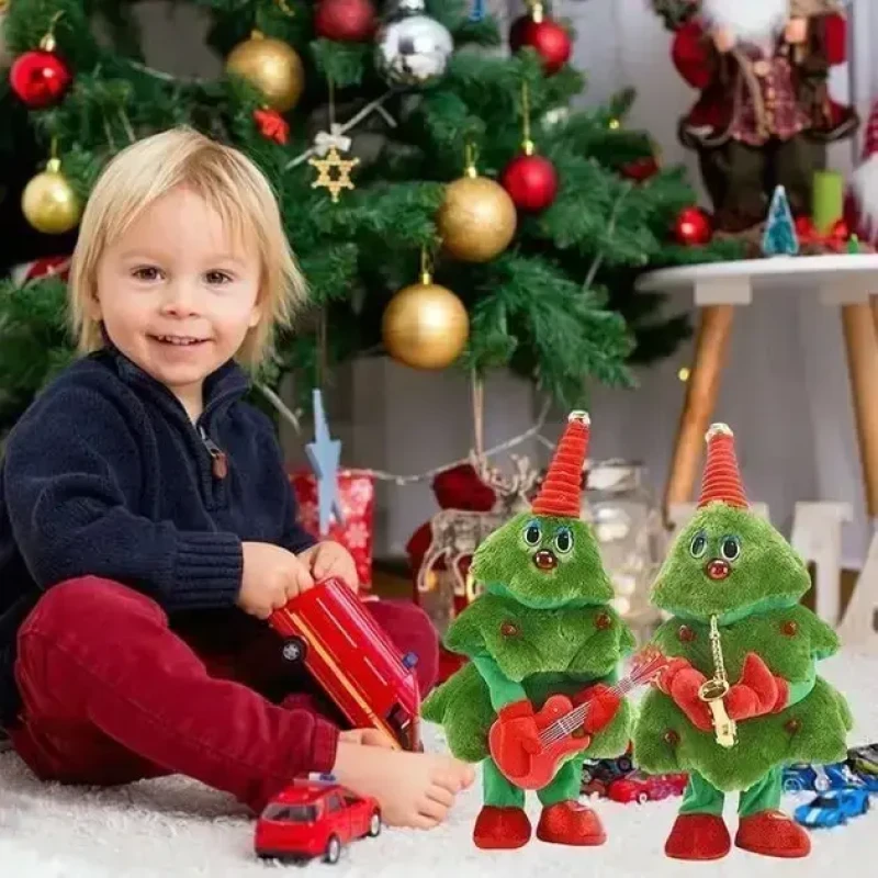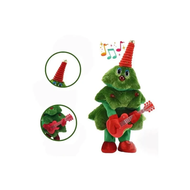 Новорічна іграшка-повторюшка танцювальна Ялинка з гітарою та підсвічуванням з музикою