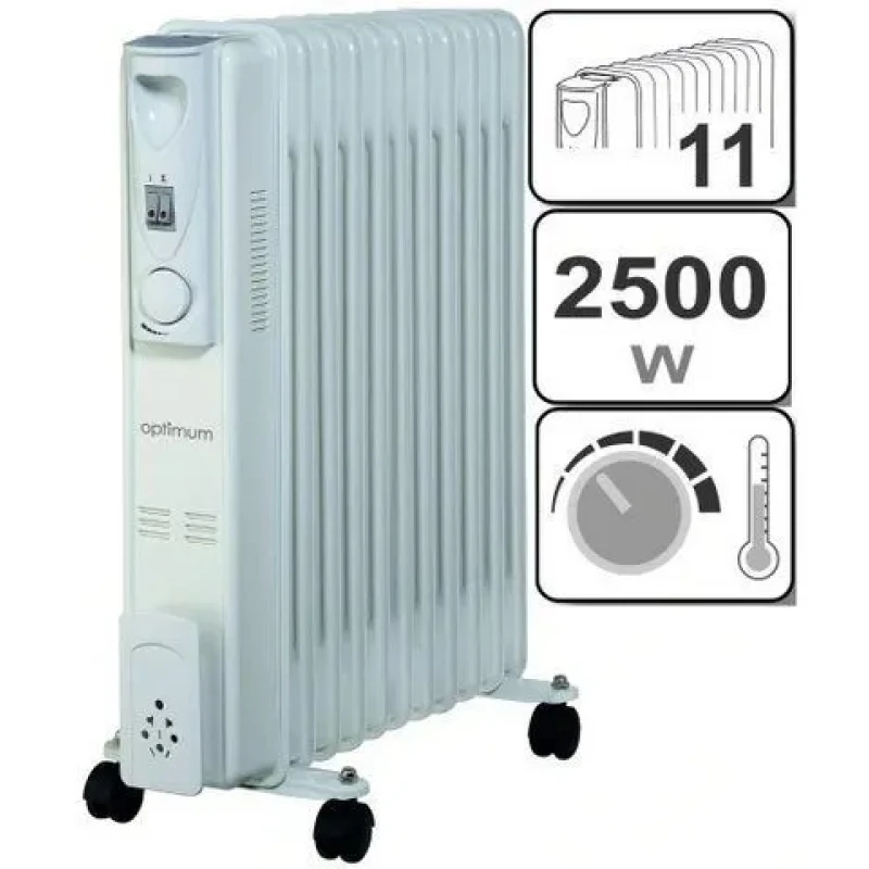 Бренд Optimum Функції Термостат Потужність Більше 2.1 кВт Захист Відключення при падінні, Захист від перегріву Максимальна площа обігріву 25 м Установка (монтаж) Підлоговий Кількість секцій 11 Масляний обігрівач Optimum OS1711 — це надійний і потужний пристрій з 11 секціями, що здатний обігріти площу до 25 м. Завдяки потужності 2500 Вт він забезпечує швидке та ефективне прогрівання приміщень, роблячи атмосферу в будинку комфортною навіть у найхолодніші дні. Цей обігрівач оснащений термостатом, який дозволяє точно контролювати температуру в приміщенні. Він також має систему захисту від перегріву та автоматичне відключення при падінні, що гарантує безпеку в процесі експлуатації. Обігрівач має підлоговий монтаж, що забезпечує зручне розміщення в будь-якому приміщенні. Для мобільності пристрій оснащений колесами, що дозволяє легко переміщати його по дому чи офісу. Цей масляний обігрівач є ідеальним вибором для тих, хто шукає надійний, ефективний і безпечний пристрій для обігріву середніх і великих приміщень. Висока потужність та зручність використання зроблять його незамінним помічником у будь-якому домогосподарстві.