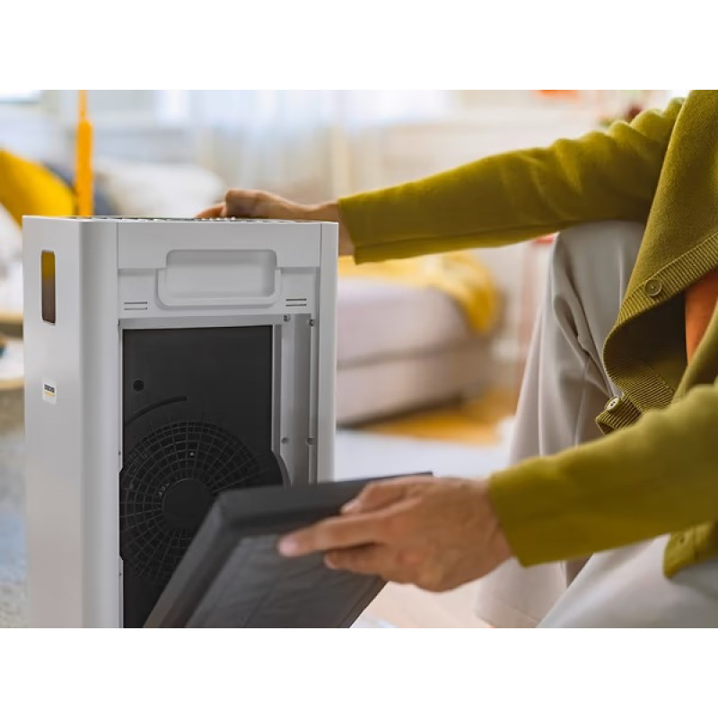 Ефективність фільтрації частинок розмірами 03 мкм становить 9995%. Очисник повітря обладнаний також високоякісним лазерним датчиком для роботи в автоматичному режимі, коли його продуктивність автоматично підлаштовується до ступеня забрудненості повітря.