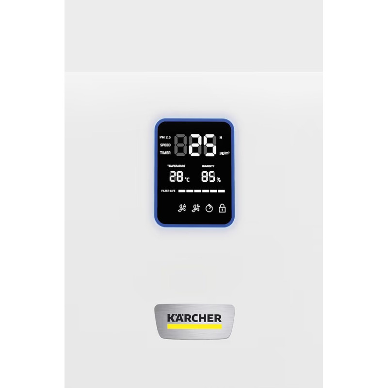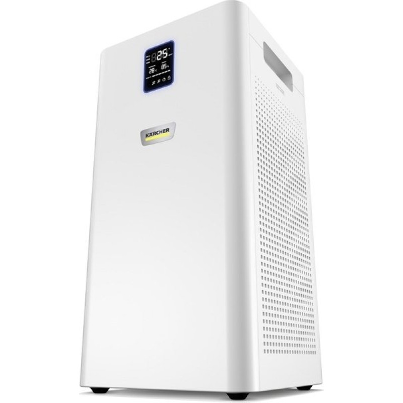 Прекрасне рішення для очищення повітря у житлових та робочих приміщеннях великих розмірів: апарат Karcher AF 50, оснащений системою багаторазової фільтрації, видаляє алергени, шкідливі речовини та хвороботворні мікроорганізми. Іншими його особливостями є наявність фільтра з активованого вугілля та алфавітно-цифрового дисплея, що відображає вміст домішок (часток класу PM 2,5 мкг/м³), температуру та відносну вологість повітря, а також колірний індикатор якості повітря. Крім того, очищувач повітря вражає функцією таймера, захистом від дітей (функцією блокування), нічним режимом і дуже тихою роботою.