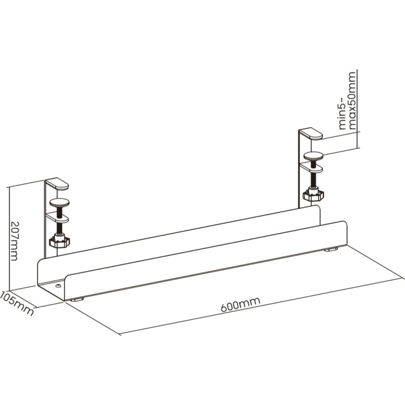 Органайзер забезпечує додатковий простір для зберігання та підходить для різних розмірів столів. Легко встановлюється за допомогою міцних затискачів та може вміщати кабелі, хаби, подовжувачі і адаптери живлення.