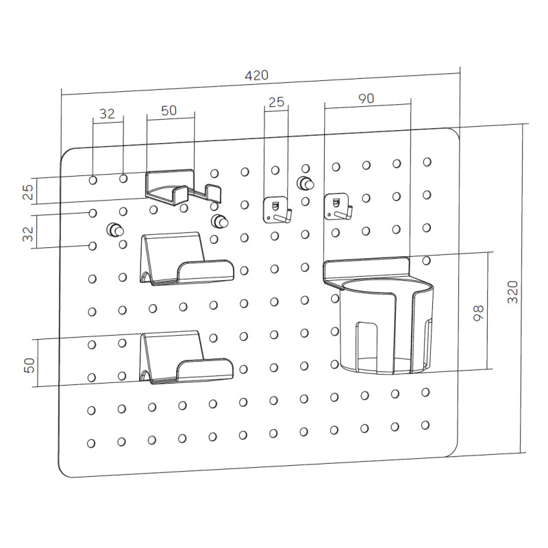 Широка можливість довільного розміщення комплектних тримачів дозволяє персоналізувати їх на свій смак. А міцна сталева конструкція та порошкове покриття поверхні забезпечують надійність та довговічність.