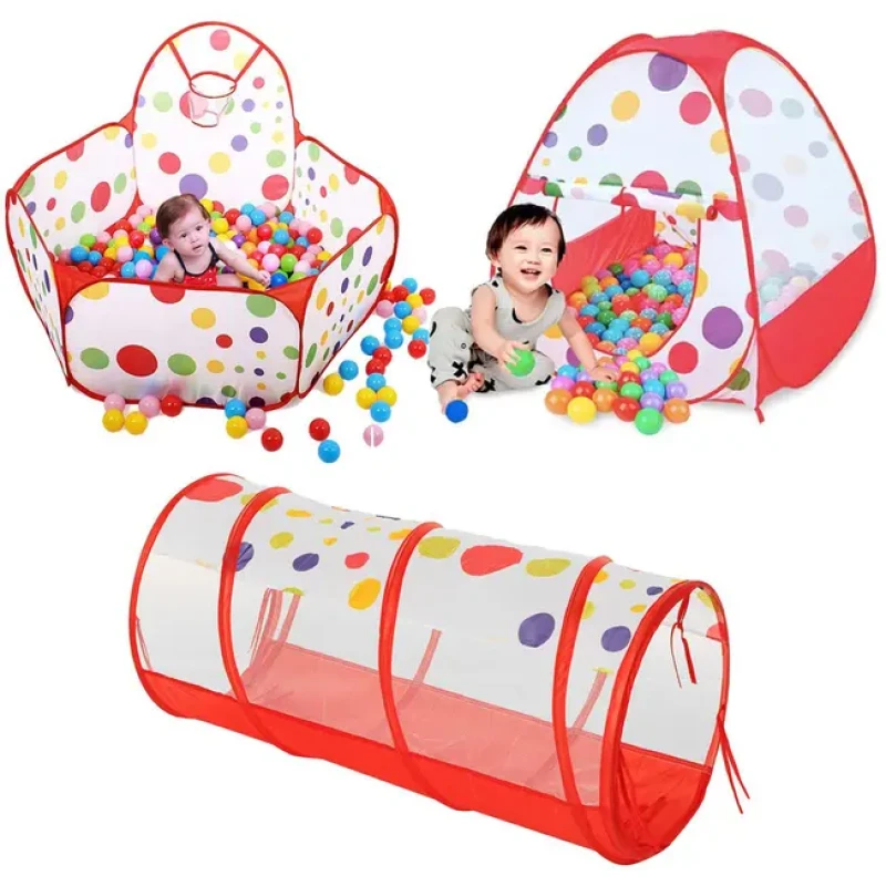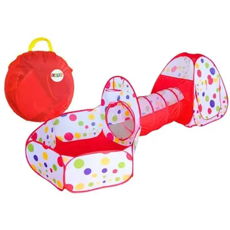 Намітка розміром 85 x 85 x 90 см, тунель довжиною 112 см. Ігровий майданчик розміром 120 x 120 x 38 см забезпечує достатньо місця для одного або кількох дітей. Простий процес складання та розбирання дозволяє швидко підготувати набір до гри всього за кілька секунд, що ідеально підходить для зайнятих батьків. Набір легко складається та зберігається в комплекті, що займає мало місця, що робить його практичним рішенням.