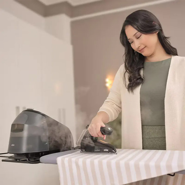 Відкрийте для себе нову якість прасування з нашою системою прасування, яка поєднує високий тиск, потужний паровий удар і стабільну подачу пари. Тепер ви можете легко гладити навіть найделікатніші тканини у вертикальному положенні, не турбуючись про складки. Достатньо одного проходження, щоб повернути бездоганний зовнішній вигляд платтям, блузам та костюмам.