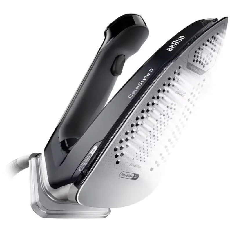 Випробуйте неймовірну потужність прасувальної системи Braun CareStyle 5, яка поєднує в собі високу продуктивність та інноваційний підхід до прасування. Насолоджуйтеся професійними результатами з унікальною технологією PowerSteam та першою у світі підошвою FreeGlide 3D, яка легко ковзає у будь-якому напрямку. Ергономічний дизайн, сертифікований інститутом ErgoCert гарантує комфортне використання. Забудьте про складності прасування та звільніть час для того, що дійсно важливо, з CareStyle 5 від Braun.