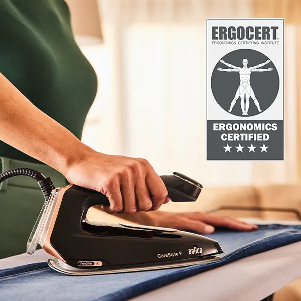 Прасувальна система Braun CareStyle 9 має унікальну ергономічну ручку відкритого типу з оптимальним кутом нахилу, що в рази зменшить навантаженість зап'ястя та дозволить комфортно прасувати будь-які речі.