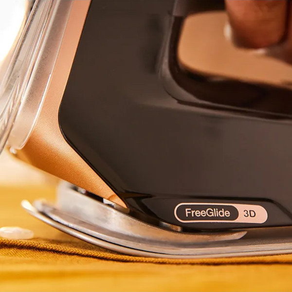 Особлива підошва, що загнута вгору, гарантує ковзання на 360°. Прасуйте у зворотньому напрямку без перешкод та заломів, минаючи ґудзики та кишені.