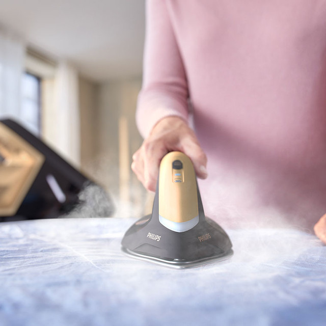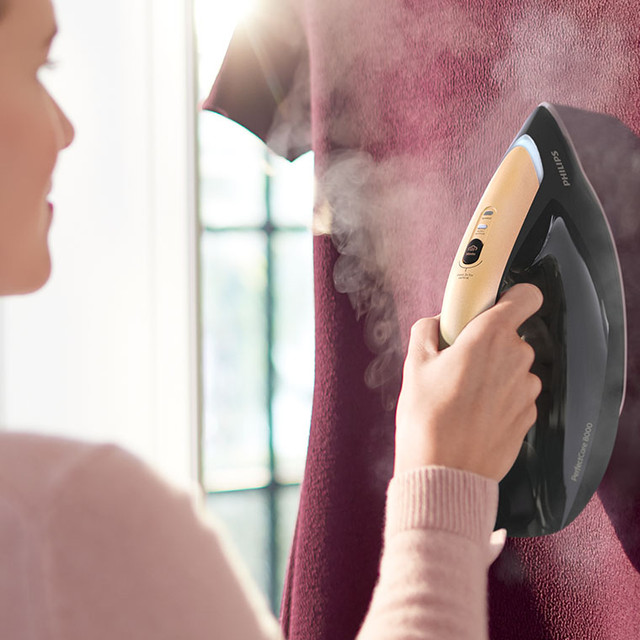 Парогенератор PerfectCare 8000 Серії ідеально підходить для вертикального відпарювання, оскільки він надзвичайно легкий та має потужну подачу пари. Тепер ви можете розгладити навіть найделікатніші тканини, сукні, пальто або одяг з пайєтками.
