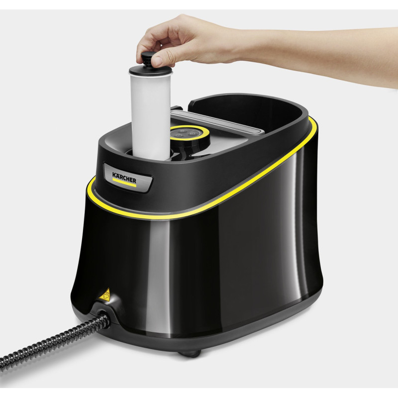 Завдяки гнучкій ручній насадці та насадці для підлоги EasyFix з ламелярною технологією, він легко очищає як плоскі, так і вигнуті поверхні. Двоступеневе регулювання пари дозволяє регулювати потужність відповідно до типу забруднення, а відсік для аксесуарів полегшує зберігання. Додаткові зручності включають резервуар для води, який можна поповнювати, та світлодіодну стрічку, яка вказує на режими роботи.
