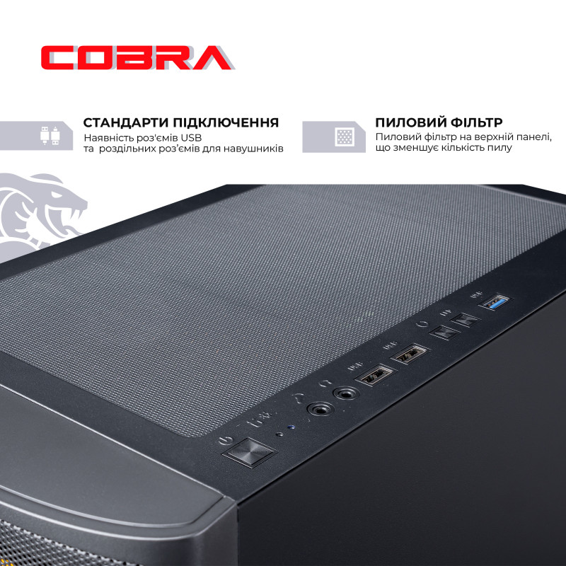 Професійна збірка комп"ютера COBRA забезпечить оптимальний повітряний потік всередині корпусу, а значить і відмінне охолодження всіх компонентів ПК.