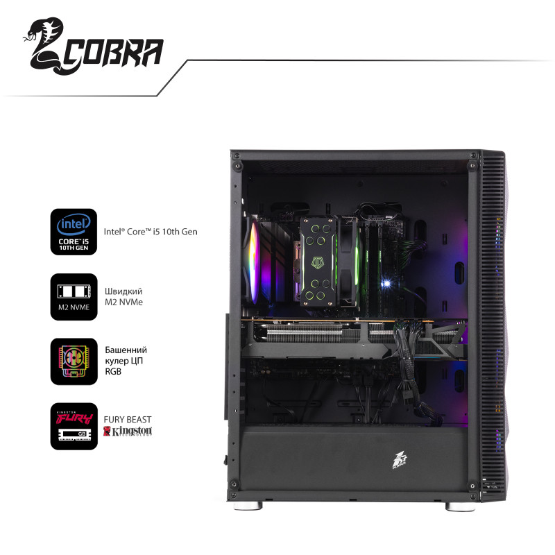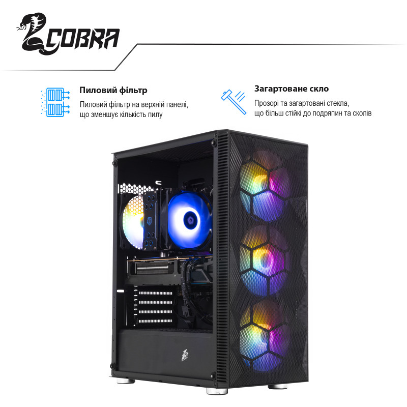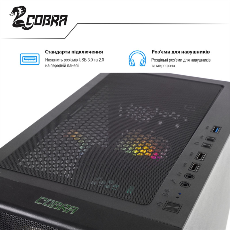 Професійна збірка комп"ютера COBRA забезпечить оптимальний повітряний потік всередині корпусу, а значить і відмінне охолодження всіх компонентів ПК.
